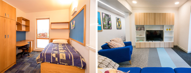 Indkvartering følger med andre studerende i kollegium på Campus